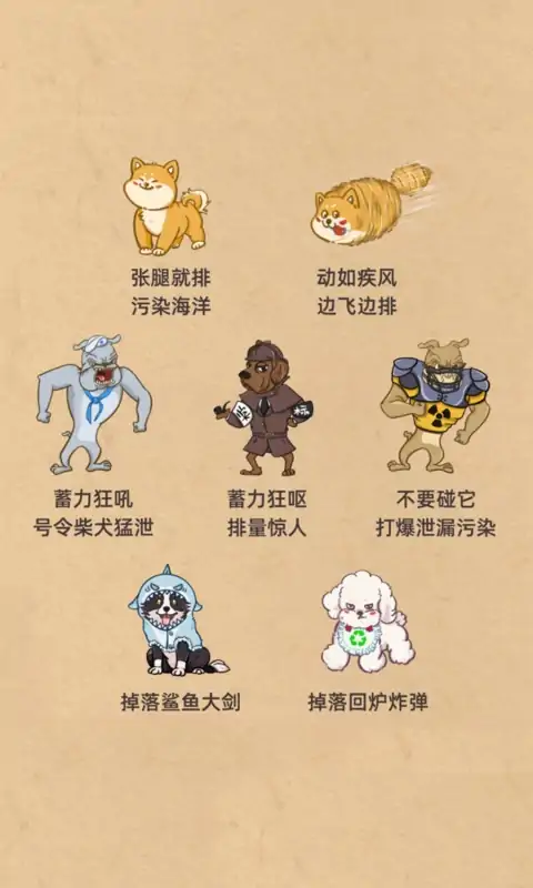 这是一款令人快意的小型单机游戏,简单易懂且意义非凡! 游戏中共有7种狗,每种都有独特的技能和象征意义。 你可以找到收割怪兽的快感,十分解压。 游戏的基础玩法有点像打地鼠,简单易懂。 手机版中包含15关x3个难度+2种无尽关卡=47关卡。