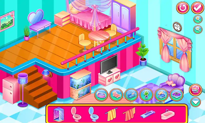 漂亮的公主最近搬到了一所新房子里,她非常喜欢这座房子并且决定仔细装修新家。你愿意帮助她来扮演设计师的角色吗?尽你所能来帮助她装修这座漂亮的房子,把公主的房间装饰的漂亮时尚。相信你一定会从游戏学到许多装修房屋的技巧和经验。最后把漂亮的房子展示给我们吧。 特征: 1. 设计房屋的外部屋顶和门窗 2. 选择漂亮的房屋外景 3. 用小狗小猫和绿色植被来装点房屋 4. 为房屋的内部房间挑选漂亮的家具 5. 调整家具的大小和位置 6. 用植物和花来装饰房间 7. 展示给我们这座漂亮的房子