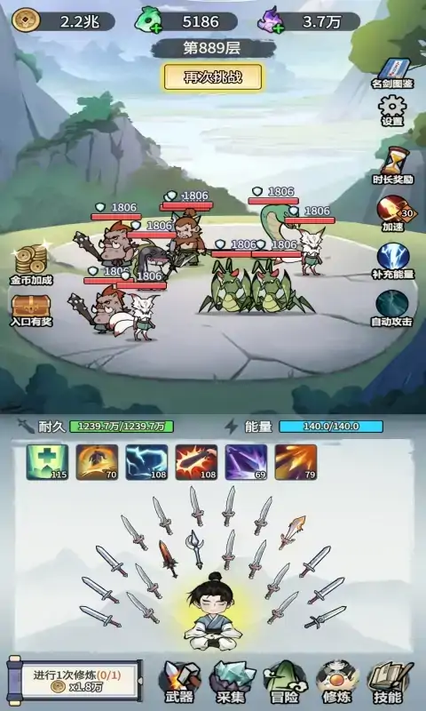 别人修仙飞升,我独爱练剑。在这款修仙挂机游戏中,你将体验到成为最强剑仙的独特魅力。轻松挂机,自动战斗,你的剑道之路从未如此轻松又充满挑战!游戏画面精美,音效震撼,让你沉浸在修仙的世界中。不断挑战更高境界的敌人,解锁更多强大的技能和装备,成为无敌的剑仙吧!
