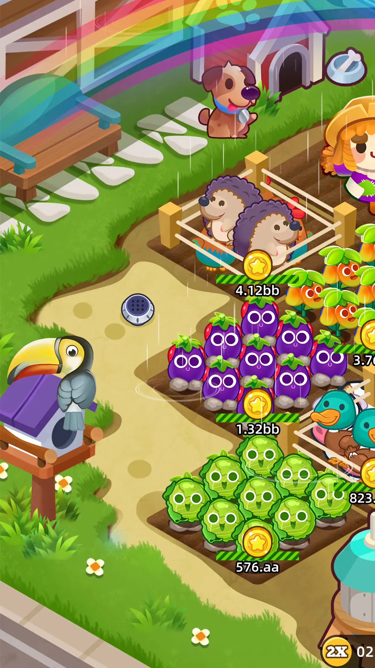 富豪农场是一款休闲模拟经营农场类游戏,在游戏中你将扮演一名农场主人,你需要更好的经营你的农场,你可以种植各种作物和家禽,你也可以卖掉植物和动物区获取种子来提升你的农场。欢迎下载体验《富豪农场》(Idle Farm)!游戏简介:自动化生产赚钱的农场帝国,通过你的发展让它更加的壮大!游戏中含有多种作物以及动物等你来发掘,通过合理的种植、养殖来赚取更多的钱,成为农场中最大的富豪!在您的农场当中可以适当的完成阳光照耀来加快生产,获取大量的金币;同时还可以通过浇水来获取双倍的收益加成,浇水最多可以延续32个小时哦!并且完成彩虹任务还可以获得的3倍金币加成!期待您的体验!游戏特色: 【自动化生产】在您离开期间作物可以自动生产积攒金币等您随时收获! 【滑动收获】每种动物收获会有不同的音效哦! 【投资生产】选择更高等级的作物来更快的赚钱 【模拟经营】自主选择光照加成或者浇水来获取更大收益 【市集达人】适当的时机选择去市集能够换取能量种子来获取更大收益 【无网络限制】不需要联网也可以同样的开玩!