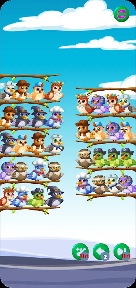 Sort the Birds 是一款完全免费、有趣且令人上瘾的益智游戏。如果您想缓解压力并锻炼一下大脑,请不要错过这款令人惊叹的排序益智游戏!它很独特,很有挑战性,但也很放松。 这个游戏需要你的注意力和策略来匹配所有色彩缤纷的小鸟。 游戏特色 - 令人惊叹的图形和可爱的小鸟。 - 一款很棒的益智游戏,可以锻炼你的大脑并打发时间。 - 没有时间限制,没有压力!仔细想想你的举动,你可以的! - 无需互联网
