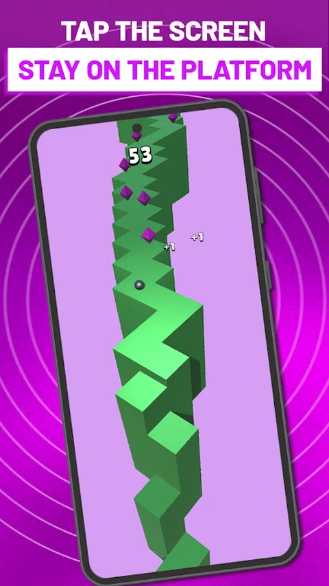 Zig Zag Ball 是一款有趣的游戏,具有引人入胜的游戏玩法。 点击屏幕来控制球。向左或向右走,尽量留在站台上。避免从平台上掉下来!如果你跌倒,你就输了!尽你所能继续前进,赚取最多积分! 在游戏时收集宝石。在 Zig Zag Ball 中,您可以使用宝石从商店购买不同的彩色皮肤。购买您喜欢的东西,随时使用! Zig Zag Ball 的特点: - 随着你不断前进,难度会增加 - 数十种不同的皮肤 - 您可以一键式游戏 - 免费玩 - 多彩的世界 - 永无止境的游戏玩法 - 您可以离线玩 如何玩: - 点击以改变方向 - 不要从平台上掉下来 - 尽量走得更远 下载 Zig Zag Ball 并立即开始玩