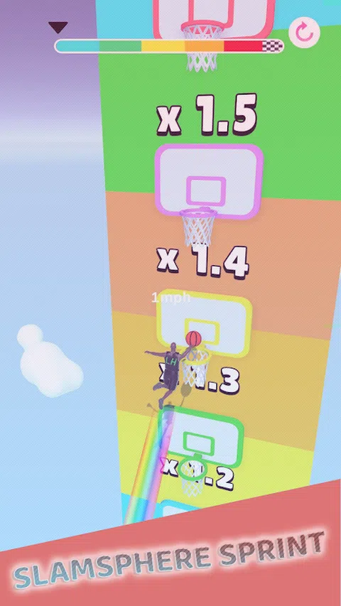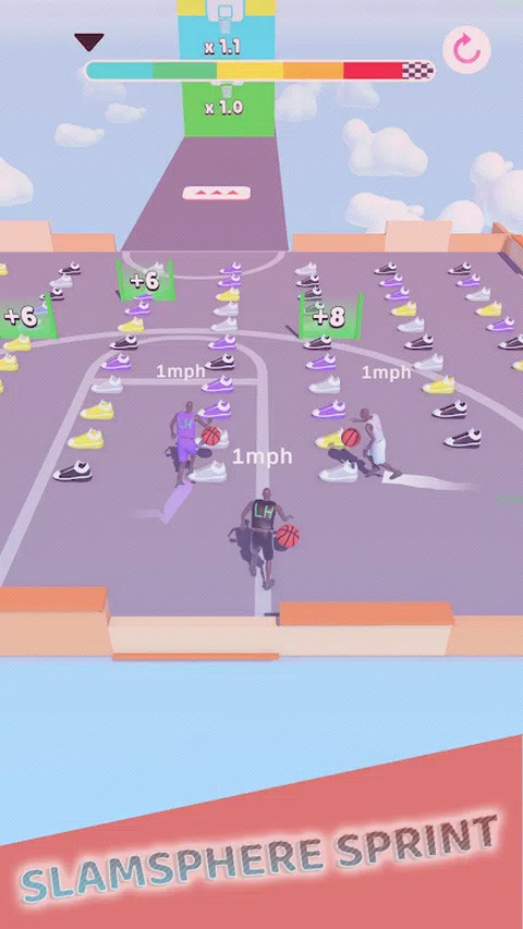 “灌篮比赛”是一款收集运动鞋以提高玩家速度和耐力的游戏。玩家跳得越高,得分越高。在游戏中,您可以收集运动鞋,使您的玩家更快更强。当玩家的速度和耐力达到一定水平时,您就可以成功灌篮