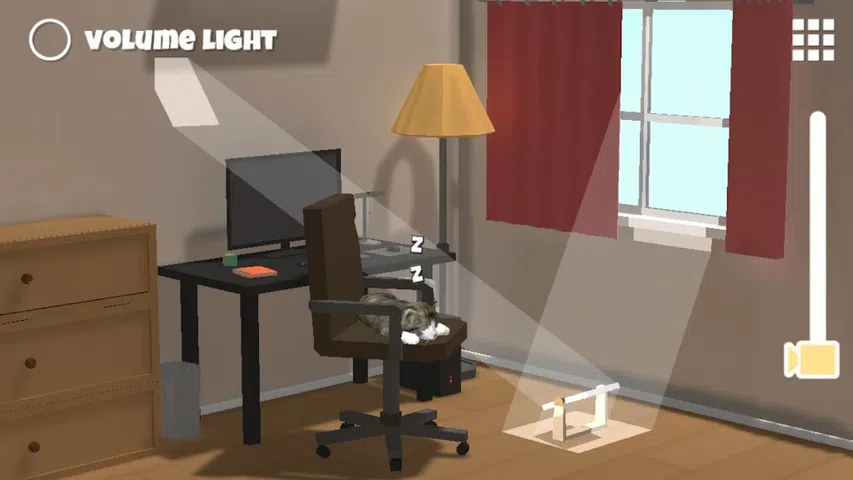 这是一款有趣的解谜游戏,通过放置镜子将光线反射到合适的方向,去唤醒睡觉的小猫