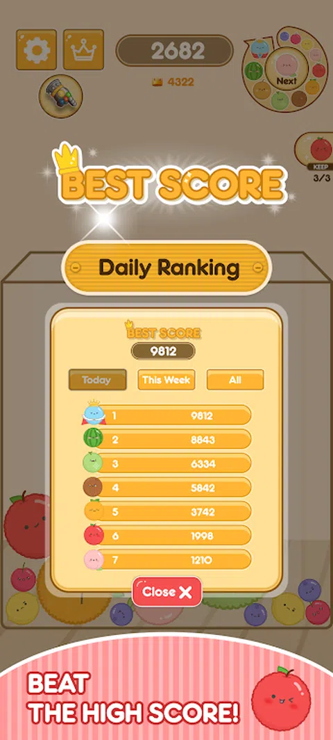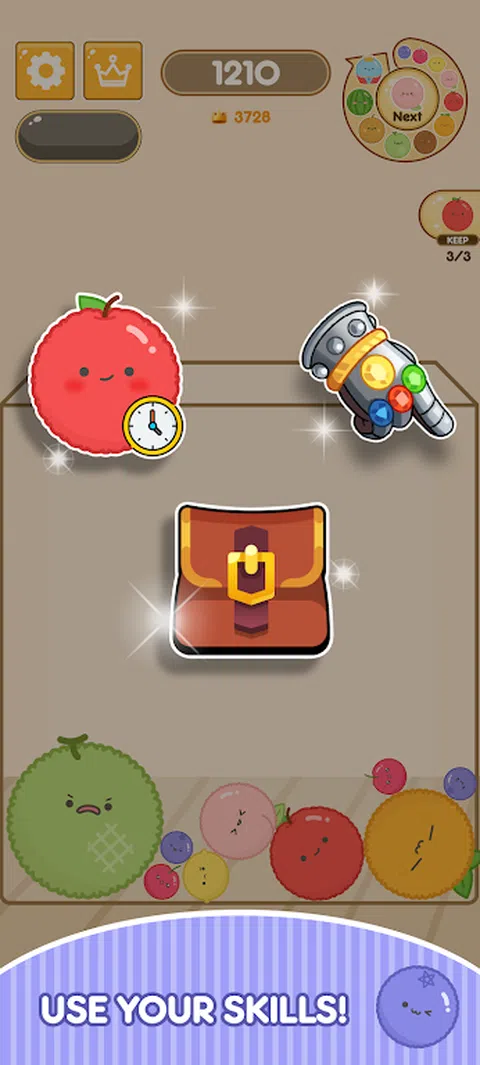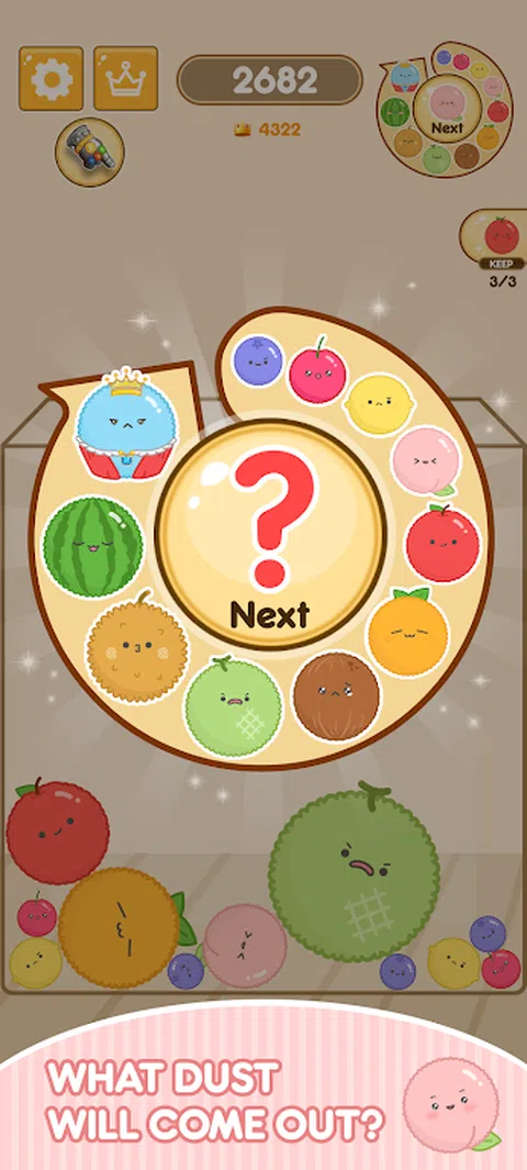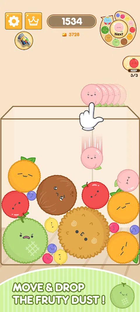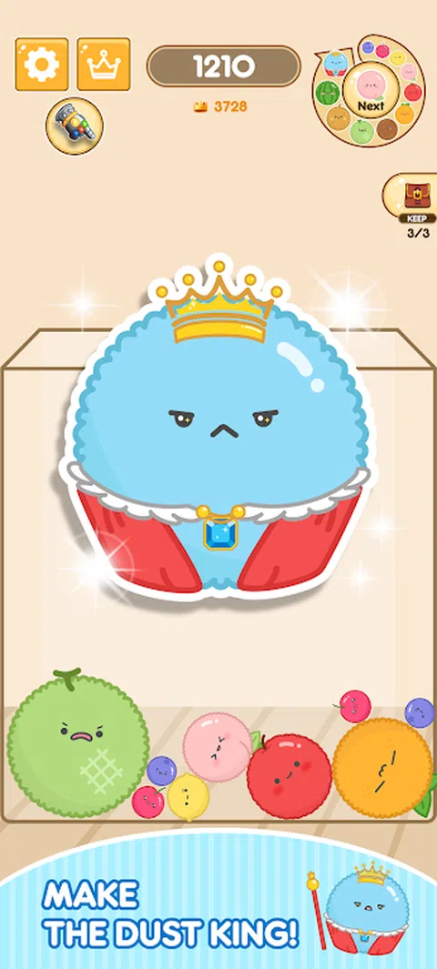 ?DustKing:合并游戏 组合类似水果的可爱尘埃粒子,创造最大的尘埃王! 当你合并并达到最高分时,你会忘记时间! ?[怎么玩] 1) 触摸屏幕将灰尘移动到所需位置。 2)当您松开手指时,灰尘将落到该位置。 3)当形状相同的灰尘合并时,它会前进到下一个级别。 4)使用各种技能不断合并! 5)当最大的 DustKing 合并时,它会随着额外的点数而消失。 6)瞄准击败高分