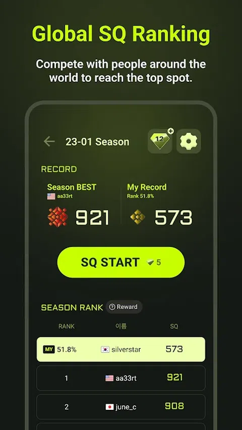 在 SQ 中感受教育、培训和欢乐! SQ(Sense Quotient)是通过各种游戏的指标来计算的。 它旨在用于验证其能力,例如反应、记忆和逻辑思维。 -SQ 赛季排名,与世界各地的人竞争!每月测试您的 SQ