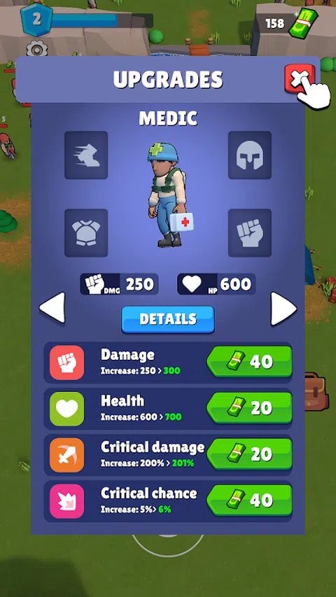 作为精英作战小队的领导者,您的任务是战略性地摧毁敌军并解放领土。参与激烈的战术战斗,赚取宝贵的货币,增强小队的能力,成为战场上最强大的力量。 特点: - 指挥各种技能娴熟的战士小队,每个人都有独特的能力和专长。 - 在各种具有挑战性的环境中,与敌军进行激动人心的实时战斗。 - 利用战略战术来战胜并击败对手。 - 收集货币和资源以升级您的小队成员,解锁强大的武器并增强您的战斗武器库。 - 探索各种任务和战役,每一项都提供令人兴奋的挑战和奖励。 整装待发,组建你的小队,为小队冒险:精英打击中的终极对决做好准备!胜利等待着那些勇敢地抓住它的人。立即下载,踏上成为终极战斗指挥官的旅程