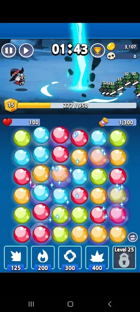 作为魔法守护者,你肩负着保护世界免受敌人入侵的特殊使命。你的任务是在三消游戏中以出色的策略和技巧消灭进攻的敌人。 获得分数: 游戏开始于一个充满不同颜色和图案的魔珠的游戏板。玩家交换这些弹珠来解决一系列三消谜题,其中涉及匹配三个或更多相同颜色的弹珠。这会给玩家带来积分,他们进行的比赛越多,得分就越高。 基于分数的技能: 玩家可以使用他们获得的分数来激活强大的魔法技能。例如,凭借攻击性技能,您可以使用火箭等各种魔法来制服敌人。提升并提升你的巫师等级,消灭逼近的敌人。 敌人入侵: 敌人会沿路攻击你。玩家可以在三场比赛中使用通过高级策略获得的分数来攻击敌人,并可以通过消灭敌人获得的物品来强化各种技能。 策略玩法: 玩家将接受测试他们计划和执行最佳策略以消灭敌人的能力。通过仔细决定要匹配哪种颜色的珠子以及使用哪些技能来继续游戏。此外,有效地使用球体来对抗不同类型和强度的敌人。 这将使玩家能够在游戏中释放他们真正的魔法守护者能力,享受独特的三消防御体验