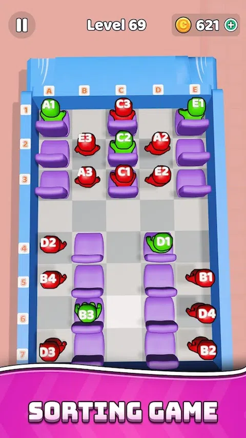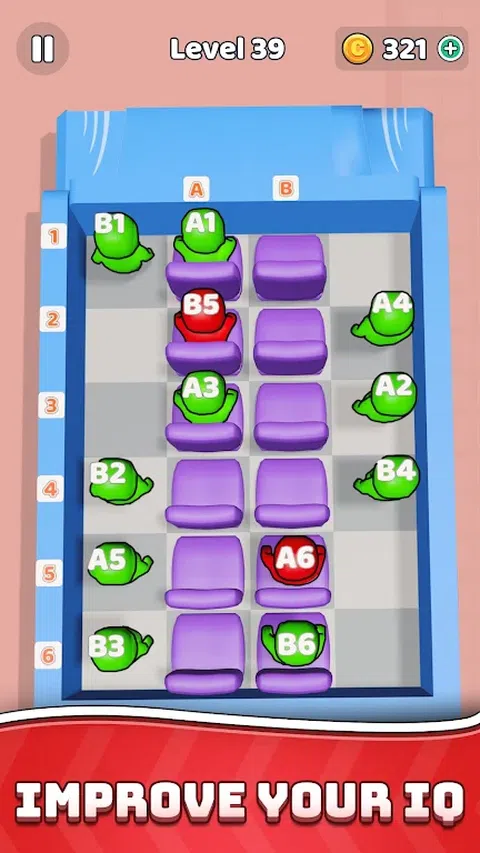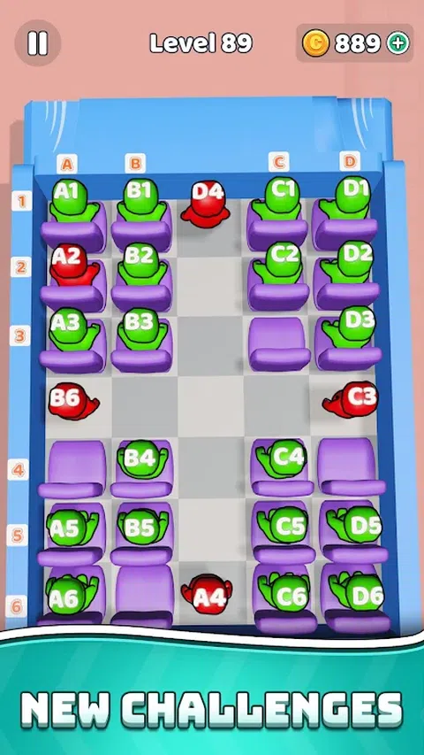 Bus Seat Jam 3D 是一款有趣且令人上瘾的排序益智游戏。准备好迎接果酱游戏中的益智拼图挑战了吗? 您的目标是为每位乘客找到一个座位。具有挑战性的座位情况,愤怒的乘客等等。 每个乘客都有一个特定的座位号。您需要将它们与座位匹配。 只需点击乘客并点击正确的座位。解决这个公共汽车高峰。 将所有乘客放在正确的座位上,然后启动公共汽车。在巴士队列中玩乐。 请注意,排序拼图中的移动次数有限。用座位果酱游戏挑战自己。 只有在路径畅通的情况下,乘客才能向座位移动。它们可以上下、左右移动,但不能对角移动。 Bus Jam - 整理座位成为最令人兴奋的旅行。座位果酱游戏是免费拼图中匹配游戏和排序游戏的独家组合。通过引人入胜的拼图在 3D 座椅堵塞中训练您的大脑。 您准备好迎接令人兴奋的 3D 益智游戏世界的巴士堵塞了吗?每个堵塞都是一项有趣而具有挑战性的任务?这不是普通的积木果酱,而是一款终极冒险棋盘游戏