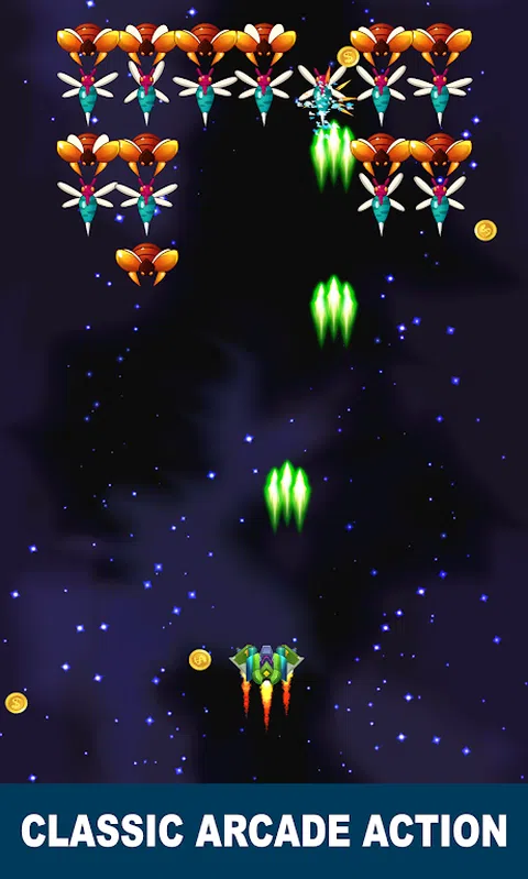 控制您的飞船并击败外星虫群。经典街机射击游戏,您将在具有挑战性的环境中面对大量外星敌人。 特点: • 无尽的街机动作或战役模式(关卡)的 2 个游戏选项。 • 随着您在游戏中的进步,升级您的武器和武器威力。 • 击败敌人并赚取游戏内货币和宝石。 • 使用货币购买武器威力并升级您的飞船