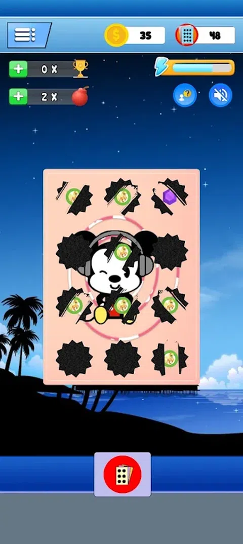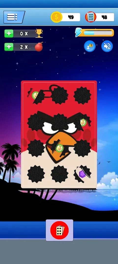 刺激的炸弹游戏,摩擦12个黑点并躲避炸弹 令人兴奋的游戏炸弹-炸弹是一款令人上瘾的游戏,是现实世界中流行的游戏,其形式为一张带有12个点的黑色圆圈的卡片,如果你摩擦它,上面会出现卡通图片,如果你摩擦它,请小心结果发现有一张炸弹的图片,然后你就输了。如果您不摩擦包含炸弹图像的黑点,您将被宣布为该游戏的获胜者 在第一个版本中,有 7 张带有可爱图片的卡片,您将获得 100 张炸弹人卡片,如果卡片用完,您可以添加更多卡片。 来吧,和你的朋友一起玩这个轻松的游戏放松一下,你可以用这个炸弹卡牌游戏来挑战