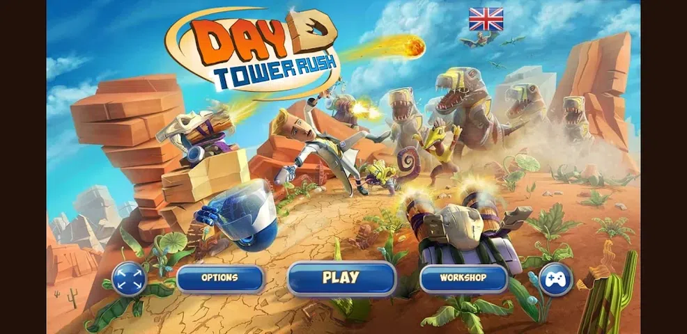 D 天 - Tower Rush 最好的在线游戏应用程序 Day D Tower Rush 基本上是一款塔防游戏,您在其中保护您的时间机器免受食肉恐龙的狂暴进攻,希望您能在收集重建时间机器所需的资源时阻止它们 帮助教授保卫他的基地以对抗恐龙。点击地图位置放置塔