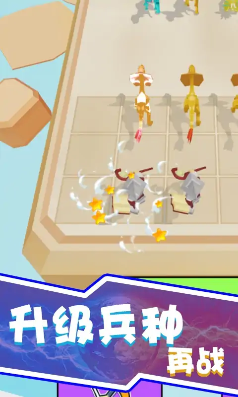 本游戏是一款,休闲、策略、对战类型游戏,游戏中我们把两个相同的动物或战士,组合会成为更高级动物和战士。