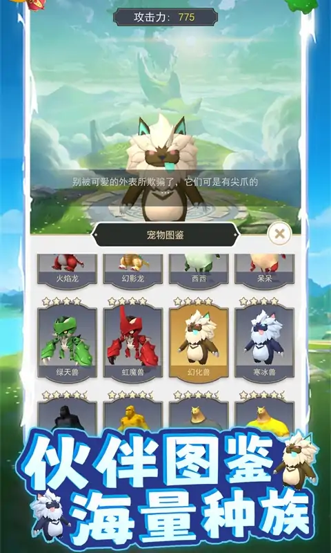 《精灵训练场》是一款捕捉加进化的休闲游戏,在世界地图上存在各种各样的精灵,需要击败并收复它们,成为那个区域的顶端驭兽师,但小心可能随时降临的天灾,他们都不好惹。 游戏特色: 1.击败并收复精灵 2.小心路上的攻击和天灾 3.尽可能收集遇到的精灵 4.打不过逃跑是不一件坏事