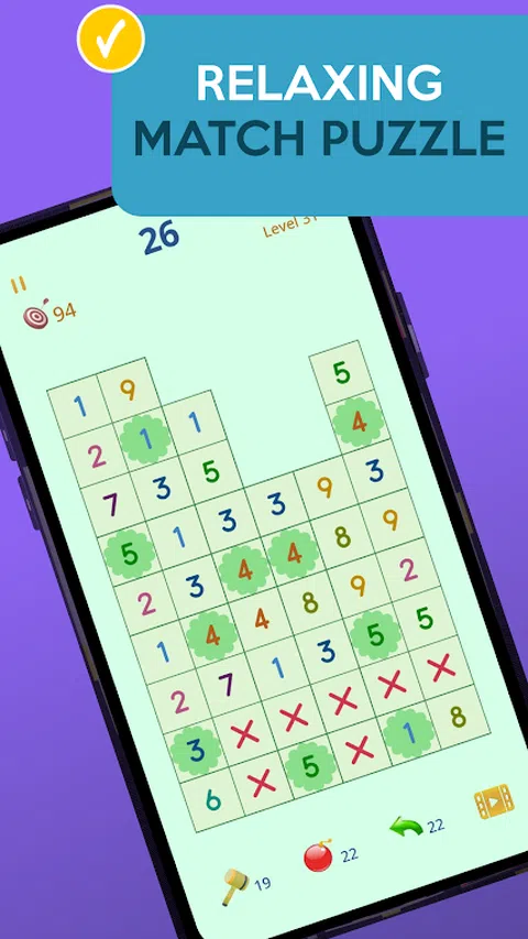 零任务是一款逻辑益智游戏,规则简单,匹配数字对并清除面板以取得成功。玩零任务对您的大脑来说是一种有用的消遣。训练您的逻辑、问题解决和认知能力,并尝试在数字游戏中超越您的目标分数! 沉浸在数学数字游戏的世界中!每当您感到疲倦或无聊时,休息一下,玩零任务拼图。通过解决令人上瘾的逻辑和数学谜题以及匹配数字来刷新自己!如果您喜欢经典棋盘游戏,请尝试零任务。享受数字的魔力,让您的大脑度过美好时光。成为匹配号码大师! 零任务是一款简单易学的数学游戏,可让您的脑灰质发挥作用!合并数字以清除面板。协调您的眼睛、手和思想。在这个免费的数字游戏中享受数小时的乐趣。当您玩这个数字掉落游戏时,时间过得飞快! 如何玩这个逻辑谜题: • 目标是清除面板上的所有标记数字。 • 在数字网格上找到成对的相等数字(例如 2 和 2)。 • 当不同的数字配对时,减法结果将写入第二个单元格,第一个单元格变为块状。 • 一个一个点击数字以划掉它们并获得分数。 • 您可以连接相邻的水平、垂直和对角线单元中的对。 • 您还必须达到目标分数才能成功。 • 如果您被困在这个数学游戏中,使用助推器(清除单元格、清除块、撤消)加快您的进度。 • 一旦从数字拼图网格中删除所有标记的数字并达到目标分数,您就获胜。 击败你的分数 棋盘越空,您的分数就越高!合并和/或减去数字,享受这些数学难题! 有很多方法可以解决逻辑数难题。但这并不像看起来那么容易。挑逗您的大脑,享受引人入胜的数字游戏体验!如果您喜欢合并数字机制,那么您一定会喜欢这个逻辑游戏! 你会得到什么: • 简单易学的逻辑谜题 • 在这个数字游戏中的游戏时间 • 没有时间限制,所以不要着急,只需放松玩数学数字游戏 • 帮助您更快实现目标的工具 用零任务拼图挑战您的大脑和逻辑,成为高手!随时随地玩这个数字游戏