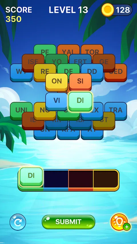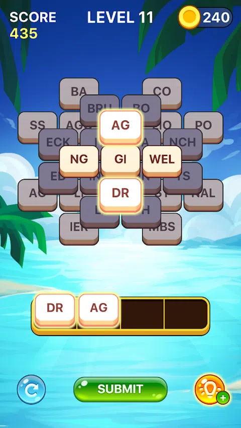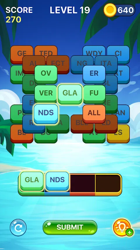 通过点击彩色图块形成单词来清除屏幕! 赚取黄金并购买提示,以帮助您清除网格