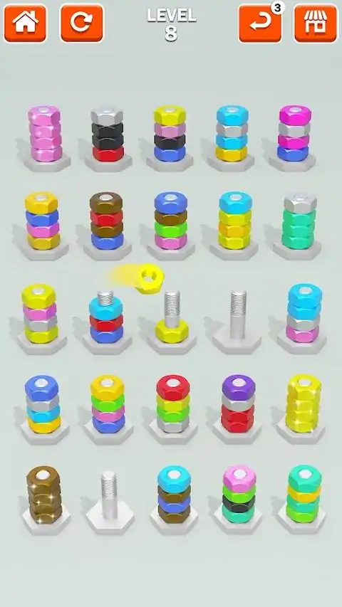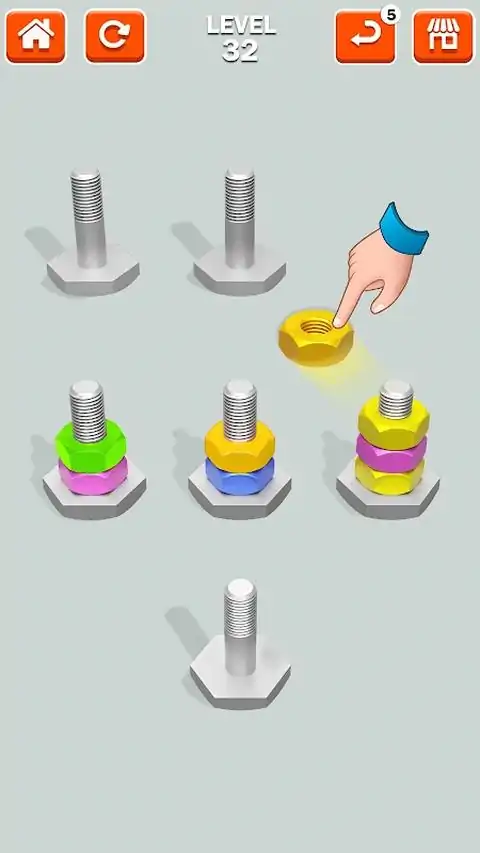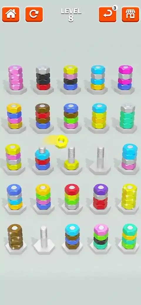 潜入一个逻辑与乐趣并存的世界!“坚果分类脑力游戏”是一款引人入胜且令人费解的益智游戏,旨在测试您的分类技巧并挑战您的智力。 主要特点: 数以百计的关卡:每个关卡都呈现出独特的挑战,并且越来越复杂。你能多快排序? 直观的游戏玩法:易于学习,但很难掌握。点击、拖动并将螺母放入各自的螺栓中。听起来很简单,对吧?等你玩! 令人惊叹的图形:享受设计精美的关卡和流畅的动画。视觉享受