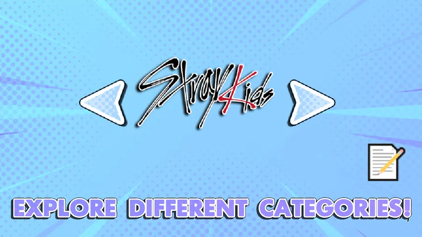 在游戏中使用您最喜欢的流浪儿童偶像(也称为 SKZ)的图像来测试您的记忆力,其中包括 Hyunjin、Lee Know、Felix、Seungmin 或 Soomin、Han、I.N 或 Jeongin、Bangchan 和 Changbin。 欣赏美丽的照片,结对,并为 STAY FANS 在此游戏中前进! 与您最喜欢的成员一起获取硬币并解锁新的游戏模式,您可以选择自己的 kpop 偶像! 享受众多关卡,并为每个关卡解锁一张新的独特照片,其中包含针对您的自定义消息! 别忘了回答表格,从你的流浪儿童偶像那里接收很酷又有趣的消息! 欣赏来自众多专辑的不同 Stray Kids 图片和图像,例如 5-Star,Noeasy,The Sound,Go Live,IN LIFE,Rock-Star,Circus,Maxident,Oddinary,All in,I Am Not,I Am Who,SKZ2020,Clé 1:Miroh,Clé:Levanter 等等! 解锁数百张可爱、卡哇伊、有趣而有趣的照片! 与 Stray Kids 及其美丽,英俊和可爱的成员一起放松身心,享受美好时光