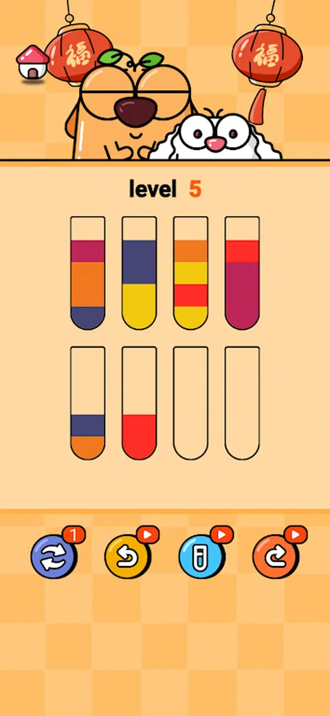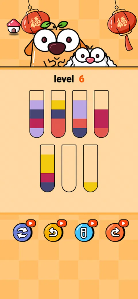 点击一根管子,将水倒入另一根管子。 您只能将水倒在相同颜色的上面。 如果有足够的空间,您只能倒水。 您可以将任何颜色的水移动到空管中。 通过在每个管中收集相同颜色的水来攻克关卡。 您可以找到“?”通过在顶部移动水。 如果卡住了,可以重试该级别。 你可以用一根手指玩这个游戏。 没有时间限制;随时随地玩。 容易玩。 您可以自定义管、帽和背景。 使用物品轻松获胜