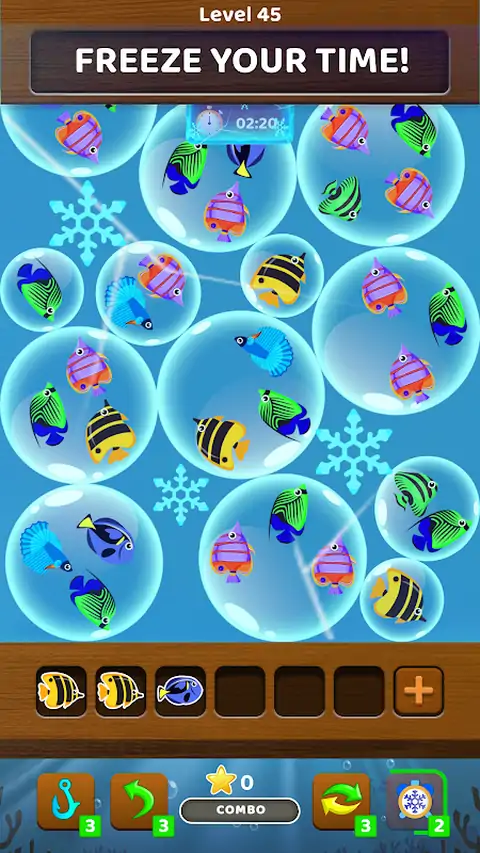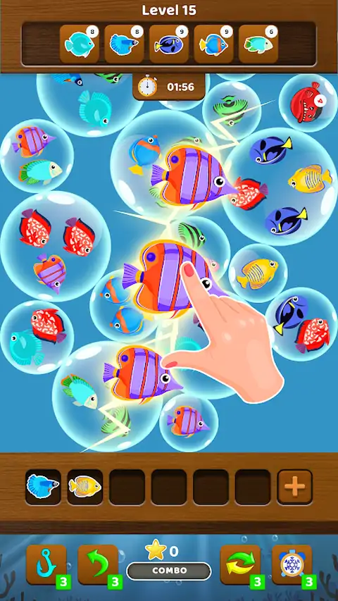 玩 Fish Sort:三重匹配拼图,增强您的大脑并加快您的思维过程;一个有趣的匹配益智游戏。 在有限的时间内找到并匹配三条相同的鱼,以提高您的拼图技能,成为匹配大师! 如何玩: * 点击三条相同的鱼,将它们释放 * 保持匹配的鱼,直到清除屏幕上的所有气泡 * 完成每个关卡顶部显示的目标,成为匹配益智游戏的高手! * 快速点击并在规定时间内完成关卡目标 * 解锁额外的鱼槽,挑战关卡 * 使用物品通过棘手的关卡 有趣的特点: - 强大的物品可帮助您轻松通过关卡。您可以冻结时间,撤消最后一步,洗牌等等! - 设计精美的关卡 - 简单易玩 - 令人上瘾,有时需要策略。 - 有趣的大脑训练,提高你的记忆力 - 想要放松的最佳消磨时间。 - 轻松轻松的鱼匹配游戏 - 免费在线或离线游戏,无需 Wi-Fi 或互联网连接 释放您的快速反应能力和敏锐的视觉,开启清除泡泡的乐趣!现在玩,加入鱼匹配益智游戏的乐趣