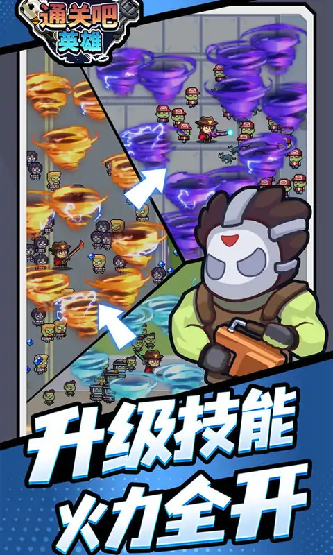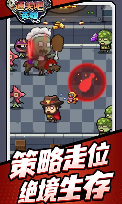 《通关吧英雄》是一款roguelike类冒险生存游戏。游戏以未来灾难世界为背景,丧尸肆虐,而黎明到来前,你必须要去打破黑暗!重建人类文明,寻找其他幸存者,消灭丧尸是你唯一的途径!