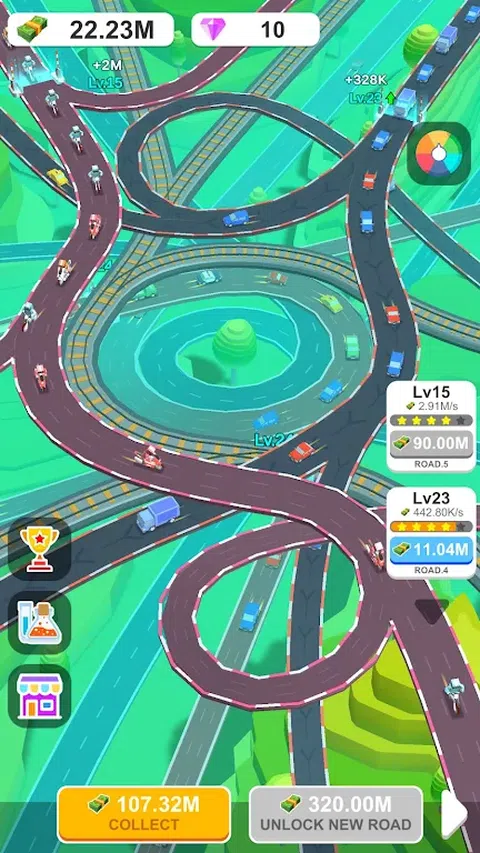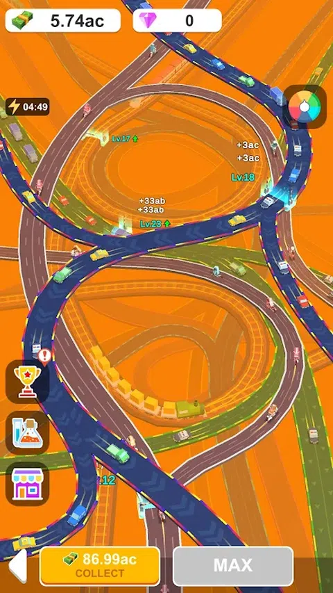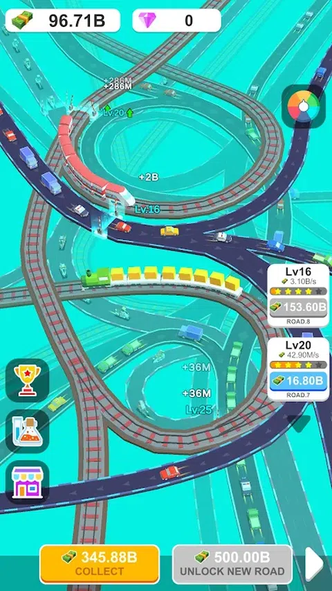 欢迎来到《公路立交桥大亨》,这款终极休闲闲置游戏,您将成为建造高耸立交桥的大师!从一次建造一个立交桥开始,看着它们向天空堆叠。通过添加更多车道、坡道和收费站来扩大您的帝国,以增加交通流量并赚取巨额利润。当汽车通过时坐下来放松,带来持续的收入。成为高速公路大亨,创造交通杰作!