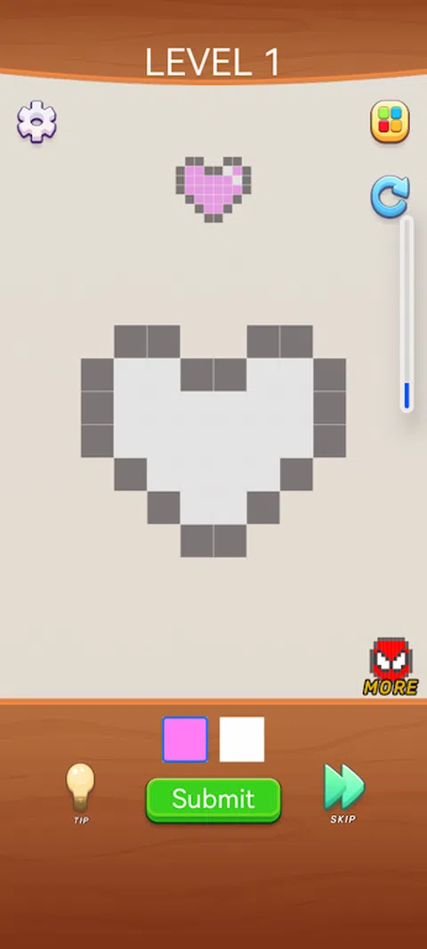 请根据我们提供的图形填写颜色,您可以通过完美恢复我们提供的图形来通过关卡