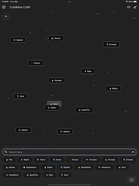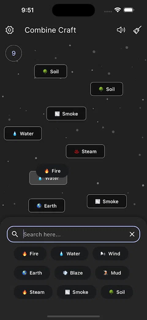 释放元素的力量!从火花、一滴水、一粒土和一阵风开始。这些小元素是您无限创造的关键。通过炼金术的魔力,以无数方式组合这些元素,打造一个有形和概念性物品的世界。 游戏挑战你的创造力和战略性,促使你解锁所有可能的组合,打造无数独特的物品。每一次创造,宇宙都会膨胀,等待你去探索它不断增长的深处。拥抱你内心的炼金术士,发现等待着你的无限可能性