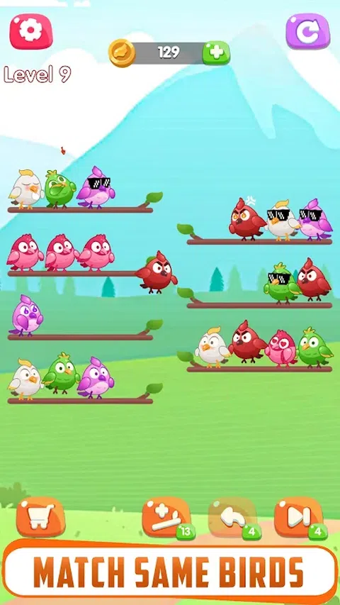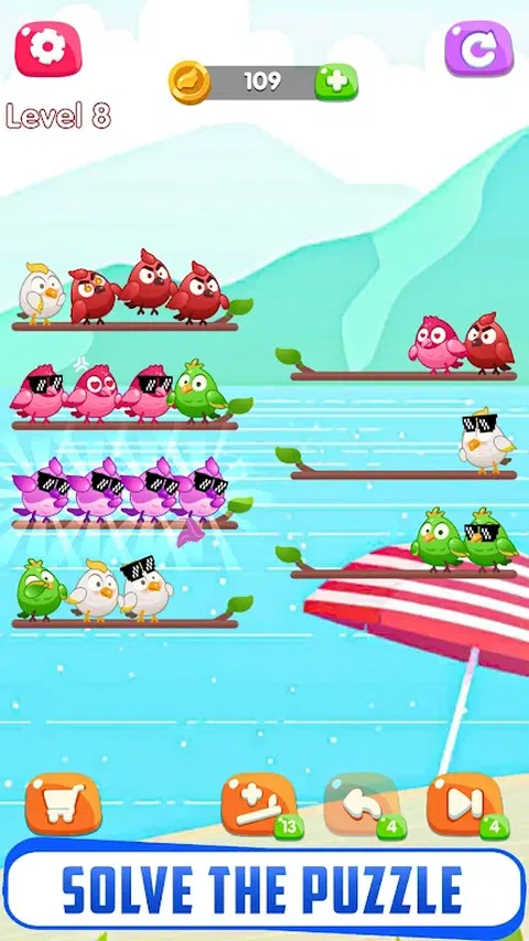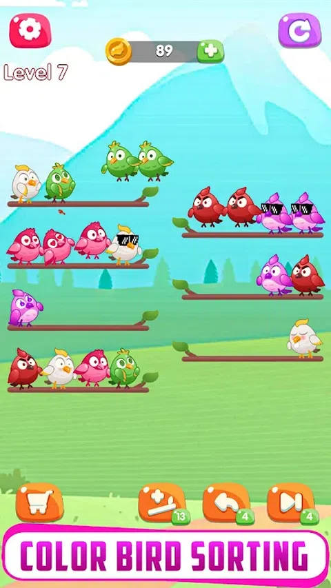Bird Sort Color Puzzle 是一款适合所有年龄段的有趣、令人上瘾和具有挑战性的游戏。你的主要任务是在树枝上对相同颜色的鸟进行分类。一旦你将所有相同颜色的鸟放在一个树枝上,它们就会飞走。 该游戏包含一系列精心设计的彩色鸟类,并包含许多有用的功能。因此,这个新的更新版本的颜色分类游戏将为您带来放松的时间,同时训练您的大脑。 欢迎来到 Bird Sort Color 的温柔世界,在那里,大自然的温柔拥抱与放松的乐趣相遇