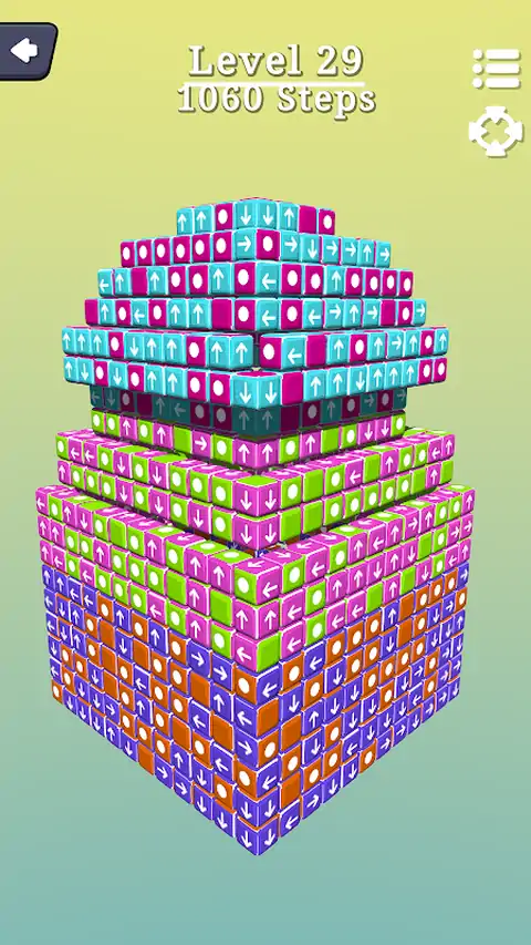 这是一款让您消磨时间的应用程序,具有丰富多彩的界面和不同的方块形状,也是一款训练您的观察能力的游戏。 用手指触摸方块。请注意,箭头方向是方块的移动方向。当路径畅通时,它将帮助方块逃脱。当您移除所有方块时,您将通过关卡。级别越高,难度就越大。帮助砖块逃脱更加困难。 请注意,有 2 种游戏模式。经典和扩展。 怎么玩: ► 用手指触摸方块,注意箭头方向,即方块的飞行方向。 ► 在不触摸方块时用手指旋转方块,以便轻松观察。 ► 使用 2 个手指放大或缩小。 ► 清除所有方块,以有限的动作通过关卡。 一旦你拯救了所有的方块,益智游戏就完成了