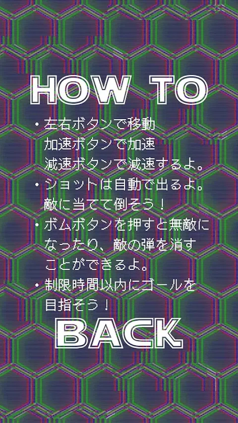 “Genkidama!基于SDGs的治疗游戏项目”为患有发育障碍(自闭症、阿斯伯格综合症、注意力缺陷/多动障碍(ADHD)、学习障碍和抽动障碍)的儿童开发治疗和教育游戏应用程序。它提供。 这是一款专为残疾儿童设计的简单游戏应用程序。 ◆《Shooting Go!》的规则超简单◆ 一款简单的游戏,您可以躲避敌人的攻击并尽快瞄准目标! 玩家可以使用左右按钮移动,使用加速按钮加速,使用减速按钮减速。 你可以通过射击击中敌人并击败他们来前进,射击会自动前进。还有一个炸弹按钮, 您可以消除敌人的子弹。当敌人子弹较多且您处于危险之中时推荐使用。 如果你能在限定时间内安全到达目标,游戏就通关了。 当时间限制或玩家剩余生命耗尽时,游戏结束。 您可以从三种类型中选择游戏的难度级别:简单、普通和困难。 随着难度的增加,弹幕也变得更加激烈和困难。 选择适合你的难度级别,目标是在躲避敌人攻击的同时通关游戏