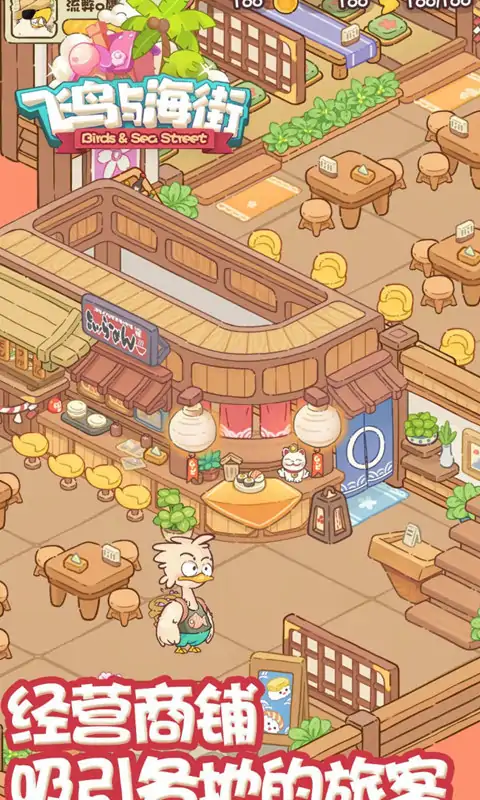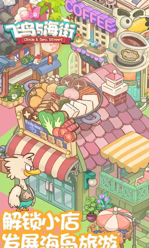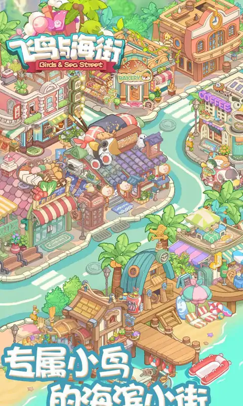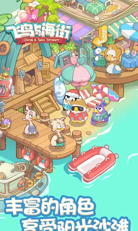 经营属于你的小海岛 看!那个小岛都是鸟儿! 欢迎来到小鸟海街~在这里你除了能收获浪花的声音,温暖的阳光和柔软的沙滩,你想吃的想玩的也应有尽有! 最重要的是,你还可以去探寻大海的宝藏! 饿了?走,我们去海里整点小鱼!