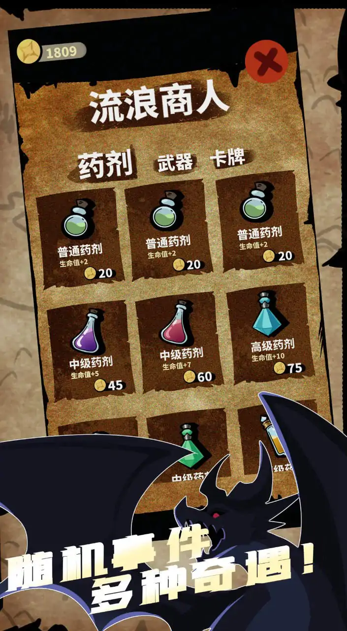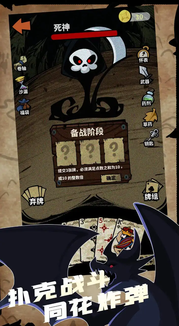 扑克牌加爬塔肉鸽,做一个快乐的打牌人。 扑克牌加爬塔肉鸽,做一个快乐的打牌人。同花、顺子、炸弹、王炸!1番、2番、4番、10番,翻倍暴击胖揍十万血的敌人吧。故事里你是一个勇敢冒险的女巫,掌握着古老扑克牌魔法的钥匙,你将要独自登上那红桃皇后的城堡,战胜邪恶的恶魔;用你手中的扑克牌、用你日益强大的魔法组合;但都归结于次元壁外的玩家你,聪明的小脑瓜子和创造力的组合,让我们再次做一个快乐的打牌人吧。