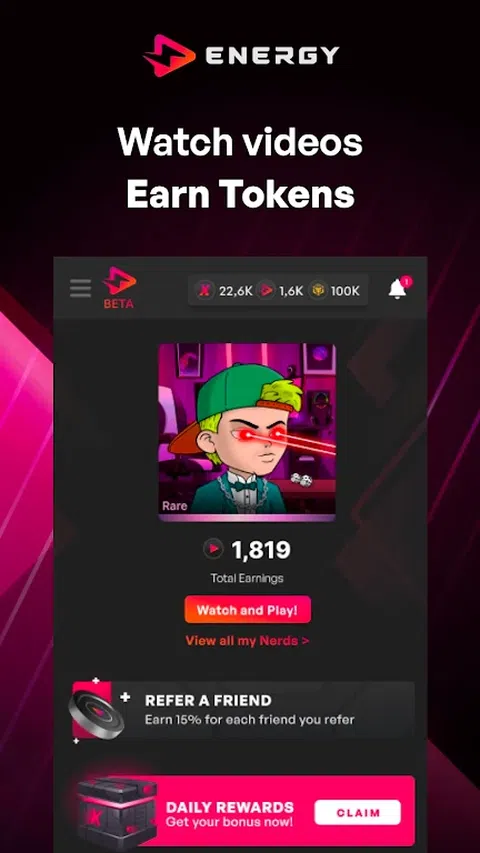 The Energy Area 是一款高度实验性的 #Watch2Earn 游戏,以 Nerd NFT 为中心。用户可以观看视频以赚取能量代币和经验值,并与彼此战斗以将他们的书呆子升级到最高级别。 书呆子是可升级的,可以参加与其他用户的战斗。升级你的书呆子,以提高他的收入潜力和战斗能力