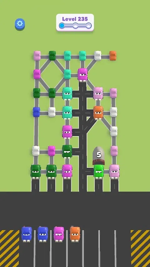 Blocking Cars 将平静的游戏体验与完成谜题的快感完美结合,使其成为娱乐和放松的绝佳选择。游戏的主要目标是为汽车开辟道路,以摆脱混乱。为了确保汽车可以自由行驶,点击汽车以解锁道路。收集 3 辆相同颜色的汽车,它们可以自由行驶