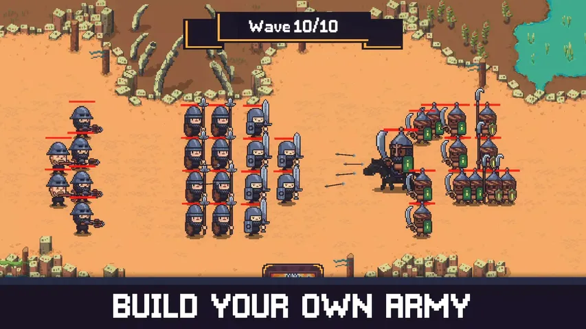 通过我们迷人的中世纪自动战斗游戏,踏入迷人的 2D 像素艺术世界,在卡通风格的宇宙中,策略与奇思妙想相遇。指挥自己的军队,应对无情的强大敌人,在丰富有趣的环境中证明自己的战略勇气。 建立你的梦想军队 :从各种各样的部队名单中精心挑选你的英雄,每个都有自己的特殊能力和特征。战略性地组建近战、远程和法师部队的完美组合,以应对未来的挑战。? 使用强大的法术 :驾驭奥术,通过一系列触手可及的强大法术扭转战局。策划完美时刻,释放魔法能力,通过魔法掌握和战术才华确保胜利。? 进行刺激的战斗 :带领您的军队与一波波敌人进行激动人心的战斗。每场战斗都是展示您的战略实力并根据不断变化的战争潮流调整战术的机会。? 解锁独特的单位 :在游戏中旅行并解锁各种独特的单位,每个都有扭转战局的潜力。发现隐藏的宝石,组建一支与众不同的小队。? 奇迹世界 :让自己沉浸在充满魅力和细节的世界中。我们自上而下的视图将一个俏皮的卡通中世纪世界栩栩如生,并配有令人惊叹的 2D 像素艺术,唤起怀旧和奇迹。? 刺激的奖励和升级 :享受每次胜利解锁奖励和升级的快感。从神秘奖励中进行选择,以增强您的力量或使用强大的法术增强实力。通过增强部队和法术以满足您的战术需求,定制军队的能力和战略。? 大师策略 :这款游戏证明了策略艺术。这不仅是要拥有最强大的力量,还要知道如何使用它。尝试不同的单位、法术和升级组合,以制定反映您个人游戏风格的制胜策略。? 作为一支卓越军队的指挥官,在迷人的风景中航行,释放独特部队的潜力,并面对一波波敌人。迎接挑战,精巧策略,并在这款神奇的中世纪汽车战斗游戏中取得胜利