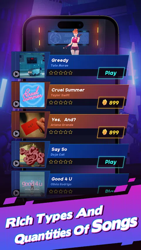 开始你的音乐冒险,潜入令人振奋的节奏冲击挑战!在这款独特的音乐节奏游戏中,体验前所未有的动感曲调和惊心动魄的跑酷动作。 玩法简单: 在跳跃、滑动和转弯时跟随节奏节拍,完成激动人心的动作并突破极限! 特点: 跟随节奏的炫酷效果,获得身临其境的体验。 关卡数量丰富,每个关卡都提供新的挑战和乐趣。 各种障碍物类型挑战您的反应速度和技能。 易于上手的控件,可快速成为跑酷高手。 丰富的个性化皮肤和武器系统,打造独特的角色。 不同的武器会触发不同的节奏音效,丰富您的游戏玩法。 歌曲种类和数量丰富,包括“Uptown Funk”、“Shape of You”、“Despacito”、“Silhouette”、“Unravel”、“Gurenge”等等。选择您喜欢的音乐来玩游戏。 您准备好迎接音乐之旅的挑战了吗?立即下载并开始您的节奏冲刺冒险
