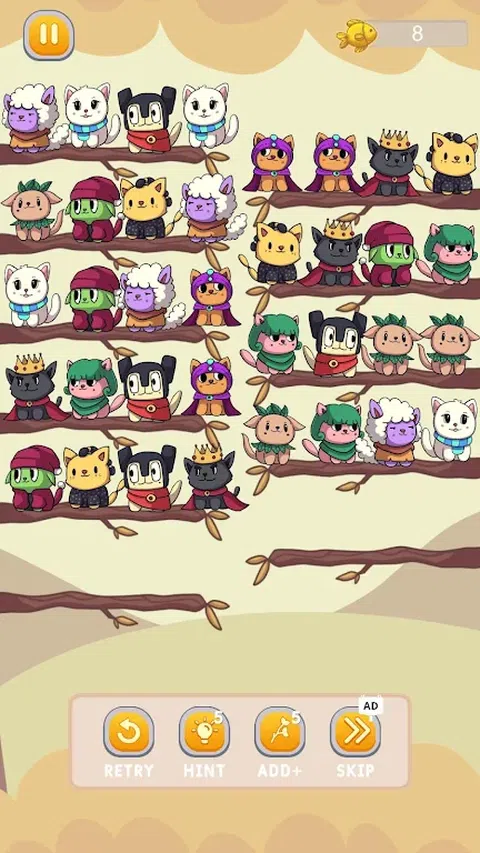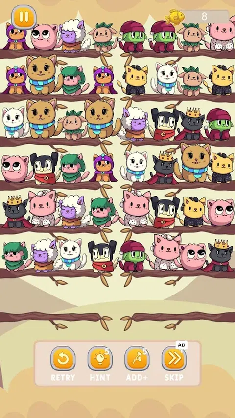 欢迎来到猫分类拼图 - 终极猫颜色分类益智游戏,适合所有年龄段的猫爱好者和拼图爱好者! 你准备好踏上充满色彩缤纷的猫咪和具有挑战性谜题的喵喵之旅了吗?Cat Sort Puzzle 在这里为您提供数小时的引人入胜的游戏和可爱的乐趣。凭借其简单而令人上瘾的机制,这款游戏旨在为您提供轻松愉快的体验。 游戏特色: 1000+关卡:各种关卡和挑战,乐趣无穷!每个级别的复杂性都会增加,测试您的解谜技巧。 充满活力的图形:让自己沉浸在色彩缤纷的猫的世界中,每只猫都有其独特的色调和个性。生动的色彩和迷人的动画将让您乐在其中。 简单直观的游戏玩法:点击并拖动猫,在指定区域按颜色对它们进行排序。简单易学,但要精通却充满挑战! 烧脑益智谜题:随着您的进步,谜题会变得更加复杂,从而磨砺您的思维并提高您的颜色识别技能。 没有时间压力:慢慢来,按照自己的节奏享受游戏。无需着急,因此您可以专注于寻找每个谜题的最佳解决方案。 适合家庭游戏:《猫咪分类拼图》是一款适合所有年龄段的游戏,非常适合家庭游戏之夜,它提供了一种有趣的方式来向孩子们介绍问题解决和颜色。 为什么要玩 Cat Sort Puzzle? 这是漫长一天后放松的绝佳方式。 提高您的认知能力和颜色识别能力。 享受以可爱的猫为主题的游戏,既舒缓又迷人。 用越来越难的谜题挑战自己。 立即加入猫科动物乐趣! 立即下载猫分类拼图并开始分类