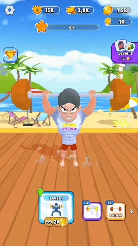 Gym Lifting Hero:Tile Master 是一款将 Tile Match 与健身元素结合使用以创建定制的独一无二的训练环境的游戏。 严格的训练模式:通过完成锻炼和提高能力,您将控制主要角色,一个刚开始在健身房锻炼的虚弱男子,并帮助他获得肌肉、力量和灵活性。 挑战和锻炼目标:为了推进并接受新挑战,您必须完成日常锻炼目标。随着级别的上升,挑战会变得越来越难,但奖励也会越来越大。 您必须完成具有随机或撤消等特殊功能的图块匹配 3 关卡,以帮助玩家更快地通过关卡,以便赚钱来升级锻炼和训练工具。 除了锻炼之外,您还可以参加其他令人兴奋的迷你游戏,例如拳击、捉迷藏,甚至与其他对手进行 5v5 组队。 这种独特的游戏玩法与传统的图块游戏不同,将让您沉浸在一个迷人而具有挑战性的世界中