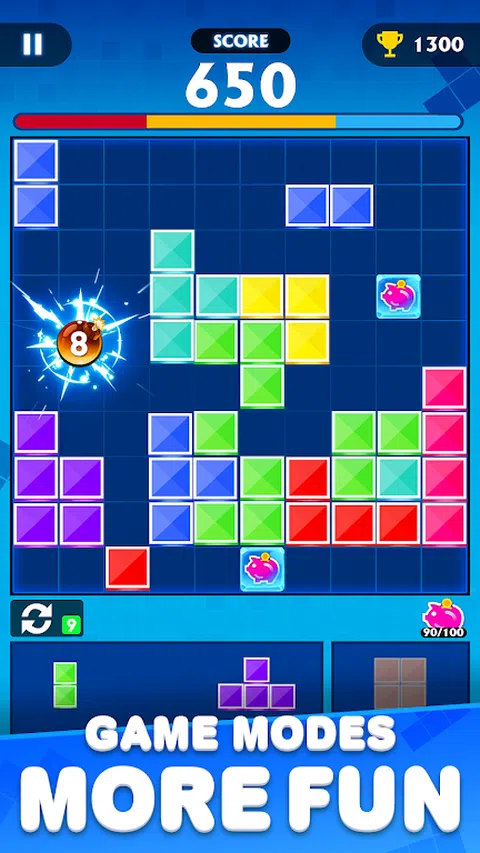 “Block Blast-Puzzle”是一款免费游戏,具有俄罗斯方块风格、益智和烧脑体验,给您的大脑带来轻松但刺激和挑战的感觉。是打发时间的理想选择。 “Block Blast-Puzzle”提供无尽的乐趣。这款休闲益智游戏不仅容易上手,还能锻炼大脑,提高智力。 《Block Blast-Puzzle》拥有四种令人兴奋的游戏模式:经典方块拼图模式、时间模式、爆炸模式和高级模式。 游戏模式: 经典模式 10x10:将方块按顺序放置在 10x10 的网格中,填充行或列以清除方块。当没有更多空间放置方块时,游戏结束。 时间模式 8x8:连续方块生成,在网格中快速放置方块,消除方块获得时间,反之损失时间,直至游戏结束。 爆炸模式 8x8:在有限的步数内防止爆炸。 高级模式 16x16:使用无法旋转的不同方块增加难度和挑战。这是对您大脑逻辑的测试,需要策略性地放置方块。 游戏特色: 适合所有人的经典方块益智游戏 免费方块益智游戏 不同主题皮肤可选切换 极其简单,轻松,但真正具有挑战性 享受具有爆炸效果的爆炸性组合游戏。消除多行或多列会带来酷炫的动画、奖励分数和令人满意的音乐。Combo 越多,得分越高。 随时随地成为方块大师。 在这个免费的休闲游戏中,您可以离线玩,无需互联网连接,您将挑战您的大脑,解决积木拼图,并测试您的智商。让自己沉浸在这个纯粹的单人益智之旅中