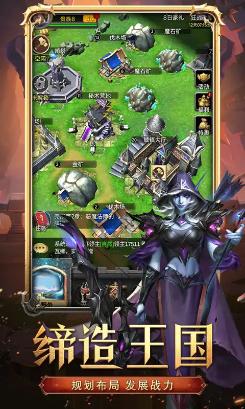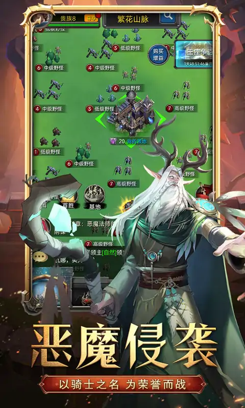 世界大型沙盘,真人玩家实时PVP战斗 在魔幻大陆上流传着古老的预言,千年之后红月来临之际,将有灭世之灾降临在这片大陆之上。 不久前,黑暗突然笼罩这片大陆,而一轮红月赫然升起,与此同时在王城科尔多基城的上空,黑暗传送门突然出现,恶魔大军从天而降,千年都城也就此沦陷。 (遥远模糊的声音)年轻人——快到维克镇来——我们需要你——这是你的命运…… 你似乎听到了命运的呼唤。 豺狼人攻入农场后你侥幸死里逃生,去往维克镇的路上结识了鲍里斯,他看到你手中的城主之戒,甘心为你效力。 你帮助守备队长诺曼击溃了维克镇里的怪物,并夺回被抢走的物资,而你也顺势成为了维克镇新的领主。 重建小镇的过程中,在一处农场中击碎了邪恶法师的阴谋,观星师瑞塔恰巧路过此地协助了你们。 她来此寻找元素之石,这颗天外神石拥有召集和历练英雄的神奇能力,这次相遇让她感受到你似乎就是拯救灾难的命运之人。 你们四处搜集,击溃各处残留的恶魔,费尽千辛万苦,终于在兽人萨鲁佳的帮助下凑齐最后一块神石水晶,而瑞塔也因为耗费魔力过度病倒,选择在你这里静养。 接下来的时间,你将避难所改造成兵营,进一步完成城镇的建设,不知不觉中你的领土不断扩张,在神石的帮助下你的部队也愈加强大。 周边的国家听闻新任领主的崛起,纷纷派出使徒前来拜访,而你踏上远征的旅途也就此开启。