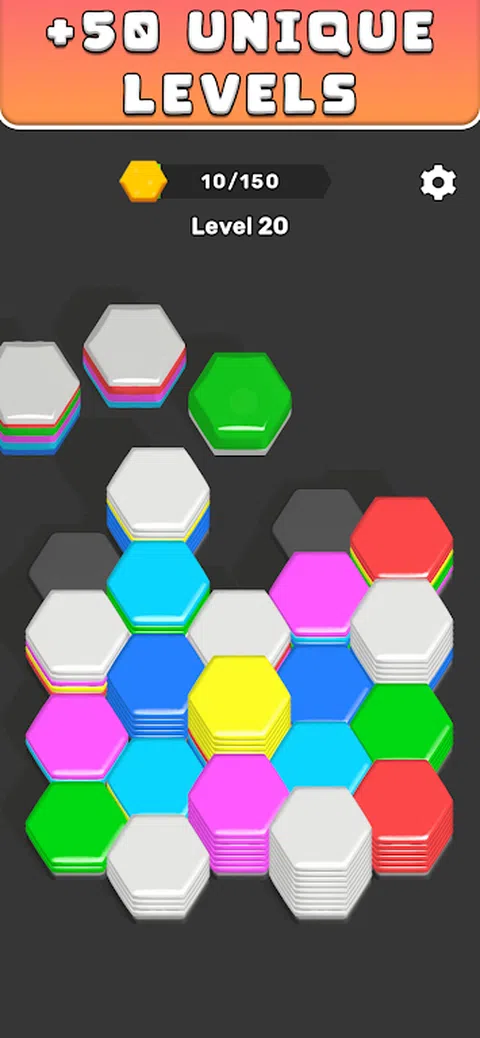 在这款引人入胜的益智游戏中,玩家沉浸在一个策略与色彩理论相结合的世界中,他们的任务是小心翼翼地将成堆的六边形放入精心设计的网格中。每个六边形都有独特的颜色,玩家的目标是有策略地放置这些六边形,使两个或多个彼此相邻的相同颜色对齐。一旦对齐,游戏的自动排序功能就会启动,无缝地组织六边形,从网格中清除匹配的集合,并奖励玩家积分。 随着网格慢慢填满,挑战随着每次移动而升级。玩家必须提前思考,有远见地规划自己的位置,以防止网格变得极其混乱。游戏的刺激之处在于在网格达到其容量之前获得足够的分数来征服关卡。随着每个级别的清除,玩家将了解更复杂的网格图案和各种六边形颜色,增加了难度和策略的层次。 这款游戏不仅考验玩家的解谜能力,更考验玩家在压力下运筹帷幄的能力。这是一场色彩、策略和时机的舞蹈,非常适合那些喜欢挑战自己的思维并陶醉于通过巧妙的移动和深思熟虑的策略清除棋盘的满足感的人。无论您是经验丰富的益智游戏爱好者,还是希望提高战略思维的新手,这款游戏都能为您带来数小时的引人入胜的游戏体验和令人费解的乐趣
