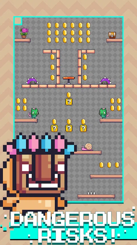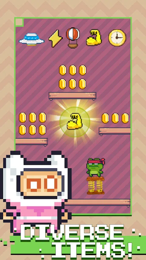 JumpKing 是一款有趣的休闲游戏,需要你不断地从一个平台跳到下一个平台。您可以在无尽模式中通过跳跃来挑战自己并创造新的高度记录。您还可以在关卡模式中在规定的时间内收集道具来解锁新的角色。JumpKing 只需要用手指控制角色的移动来收集物品,不断打破高度记录! 在无尽模式中,你需要小心突如其来的敌人,小心平台上不断生长的荆棘,还有最重要的一点:不要掉下平台! 如果您想提高实力,关卡模式将适合您。你需要在规定的时间内收集有价值的道具和角色碎片。收集足够的碎片来兑换新的强大角色,这将为你的冒险带来很大的帮助! JumpKing 不仅是一款跳跃类游戏,更是给你一个挑战自我、超越自我的平台。如果你喜欢挑战,那就加入我们,开始你的冒险吧