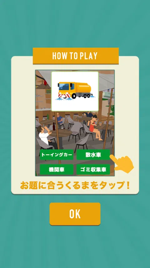 工作车,你了解多少? 让我们通过一个简单的益智游戏来学习各种汽车吧! 这很容易玩! 只需从选项中找到并点击与您的主题相匹配的汽车! 任何人都可以随意玩! 尽情玩耍吧