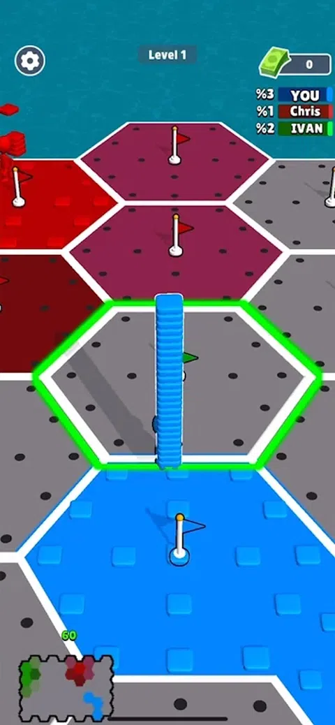 收集与您相同颜色的砖块,并用您的颜色绘制它们,征服对手的土地。发展您的国家并收集更多砖块。击败所有对手,用您的颜色绘制整个世界