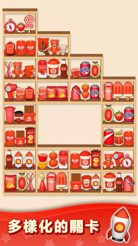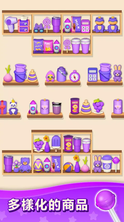 准备好在《货物分类:三消拼图》中踏上前所未有的激动人心的匹配冒险!这款配对益智游戏为经典匹配 3 类型提供了独特的转折,将战略排序、重新安排的挑战与激动人心的益智游戏玩法相结合。 特点: 具有挑战性的分类游戏玩法:潜入商品世界,参与令人上瘾的分类谜题。交换并匹配 3 个或更多相同的商品,将它们从面板上清除并赚取积分。 独特的商品和能力:遇到各种具有不同属性和特殊能力的商品。有些物品可能会爆炸,而另一些则可以清除整行或整列。制定移动策略,充分利用这些能力并创造强大的连击。 令人兴奋的道具和助推器:解锁并使用一系列道具和助推器来增强您的分类能力。这些有用的工具可以帮助您克服障碍,清除困难级别并获得高分。 引人入胜的关卡和故事:在这个 3D 分类冒险中探索不同的故事,每个故事都有自己的一组具有挑战性的关卡。从熙熙攘攘的市场到宁静的花园,视觉上令人惊叹的环境将让您着迷。 障碍和有限移动:在游戏过程中面对各种障碍和有限移动。仔细计划您的行动并制定策略以克服这些挑战并在给定限制内完成目标。 怎么玩: ? 交换并重新排列相邻的商品以创建 3 个匹配。 ? 匹配 3 个商品以创建强大的组合并获得奖励积分。 ? 利用某些商品的特殊能力为您带来优势。 ? 有策略地使用道具和助推器来克服障碍并清除关卡。 ? 取得高分并完成目标,以在游戏中取得进展并解锁新的关卡和故事。 踏上这个分类冒险之旅,用《商品分类:成对匹配拼图》的独特游戏玩法挑战自己。准备好分类、匹配、重新排列和征服等待着您的激动人心的谜题
