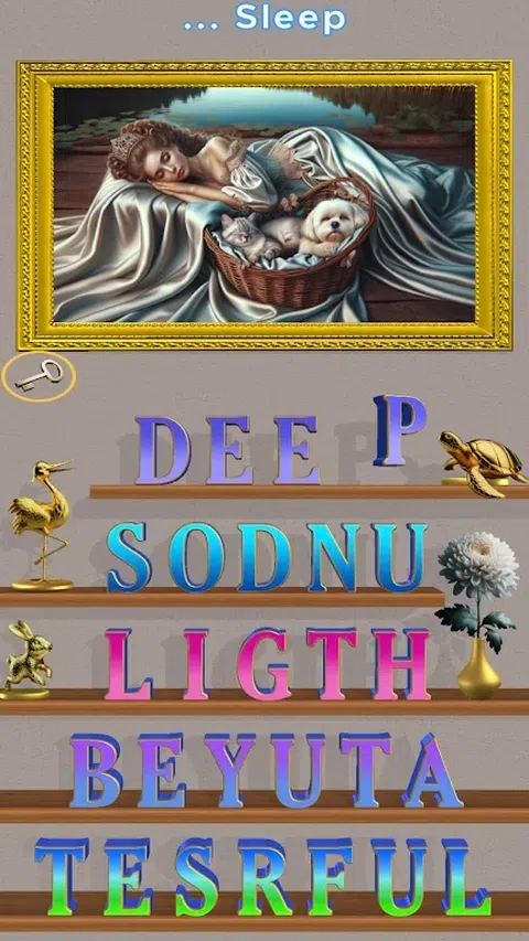 单词架是一种独特的单词拼图体验!在豪华的架子上滑动字母以组成单词。发现隐藏的单词!在装饰着金色小雕像的架子上滑动和交换令人眼花缭乱的 3D 字母。在书架上的 3D 文字游戏中挑战您的词汇量