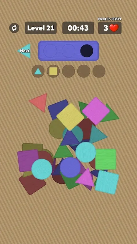 在时间用完之前找到所有相应的木块来填充盒子