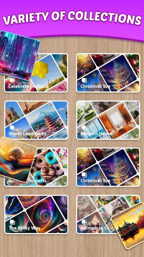 欢迎来到 Jigsaw Zen - 您宁静的拼图静修所!在您的移动设备上沉浸在拼图游戏的宁静中。这不仅仅是另一个益智游戏;这是一次平静的逃生,带来欢乐、放松和你拼凑的每件作品的成就感。非常适合所有年龄和技能水平的拼图爱好者! 为什么选择拼图禅? - 大量拼图:探索数百张高质量、精美的图片,涵盖各种类别。从宁静的自然风光和美丽的城市景观,到鲜艳的动物色彩和错综复杂的抽象设计,总有一些新东西可以挑战和激发您的兴趣。 - 可自定义的难度:无论您是拼图新手还是经验丰富的专业人士,《Jigsaw Zen》都能提供可自定义的体验。从简单的 10 块拼图到更复杂的 500 块挑战,从各种难度级别中进行选择,调整块数以适合您的心情和技能水平。 - 放松和集中注意力:参与舒缓心灵和集中注意力的正念活动。受禅意启发的温和界面和舒缓的音景创造了一个放松和享受安静时光的完美环境。 - 每日谜题和挑战:通过每天添加的新挑战和独特谜题,保持您的谜题技能敏锐。赚取奖励,跟踪您的进度,并成为解谜大师。 主要特点: - 令人惊叹的图形和用户友好的界面,带来身临其境的体验。 - 离线模式让您随时随地享受拼图乐趣。 - 保存您的进度,稍后继续您的拼图。 缩放和平移功能可帮助您解决每个难题的细节。 Jigsaw Zen 提供放松与挑战的完美结合。这不仅仅是将各个部分拼凑在一起;这是为了在你的一天中创造平静和满足的时刻。无论您是想在漫长的一天后放松身心,寻求片刻的平静,还是只是想享受完成精美拼图的满足感,Jigsaw Zen 都是您移动设备上的终极拼图目的地。 立即下载,开始您的拼图之旅,放松身心,精通拼图禅