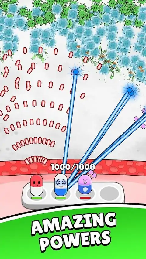 潜入药丸堡垒,这是一款以免疫为主题的世界中的基地防御游戏。 使用战略药丸放置和战术升级来防御一波又一波的病毒,以最大限度地提高您的生存机会,保卫您的堡垒。 - 在墙上动态放置药丸,以更好地破坏病毒 - 随着关卡不断演变的病毒威胁,需要消灭更新、更凶残的病毒 - 解锁强大的新药丸角色,帮助您保卫要塞 - 充满活力的 2D 图形,适合儿童的游戏 Pill Fortress 提供简单而引人入胜的游戏玩法,非常适合快速娱乐或战略掌握。 加入防御行动,将病毒入侵者拒之门外